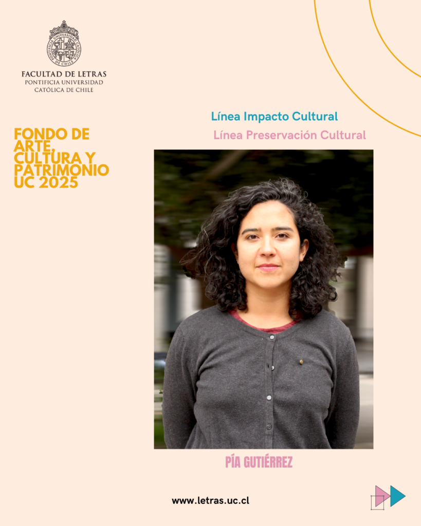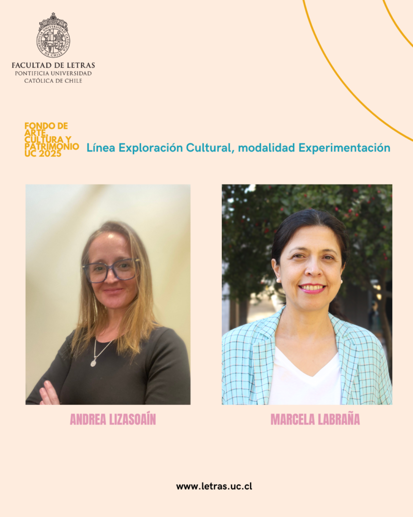 Cuatro proyectos liderados por académicas de la Facultad de Letras fueron seleccionados para ser financiados por el Fondo de Arte, Cultura y Patrimonio UC 2025, impulsado por la Dirección de Arte y Cultura en conjunto con la Dirección de Patrimonio, ambas dependientes de la Prorrectoría. La convocatoria considera las líneas Impacto Cultural, Preservación Cultural y Exploración Cultural, diseñadas como parte de la Estrategia UC 2026–2030.