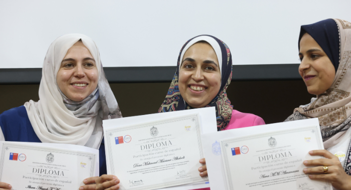 Cerca de 60 palestinos asistieron al Programa Español UC, de la Facultad de Letras, que promueve la integración lingüística y social, en coordinación con el Ministerio del Interior y ACNUR. “Aprender español fue difícil, me equivoqué y me caí muchas veces, pero cada palabra es una prueba de que soy capaz de seguir adelante”, dice Yacoub Tabal. La jefa del programa, Marcia Sierra, destaca que “la lengua es un espacio de encuentro, un puente entre historias y una herramienta para habitar un país nuevo con dignidad y voz”.