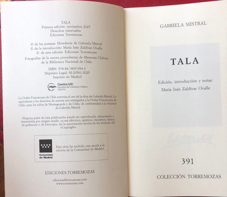 Tala, tercer libro de poemas de Gabriela Mistral, fue reeditado recientemente en España por Ediciones Torremozas bajo el sello del Centro UC de Estudios de Literatura Chilena (CELICH) de la Facultad de Letras. La edición estuvo a cargo de la académica María Inés Zaldívar y permite renovar la circulación de una de las obras fundamentales de la poeta chilena.