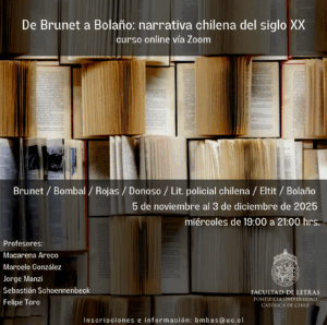 El presente curso propone una revisión panorámica de algunas voces narrativas que forman parte del canon de las letras nacionales y tiene como objetivos ampliar el conocimiento acerca de la narrativa chilena y desarrollar en los participantes la capacidad crítica de re-significación de obras que han mantenido el interés tanto de los lectores comunes como de una academia especializada.