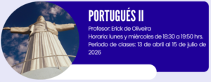 El curso llevará el alumno a mejorar su gramática, vocabulario, comprensión escrita, auditiva y expresión oral del portugués de Brasil. Ampliará su contacto con la cultura y contexto social brasileño para una mejor comprensión de las expresiones típicas, formales e informales. El alumno deberá terminar el curso con una buena capacidad para comunicarse en dicho idioma (oral y escrito).